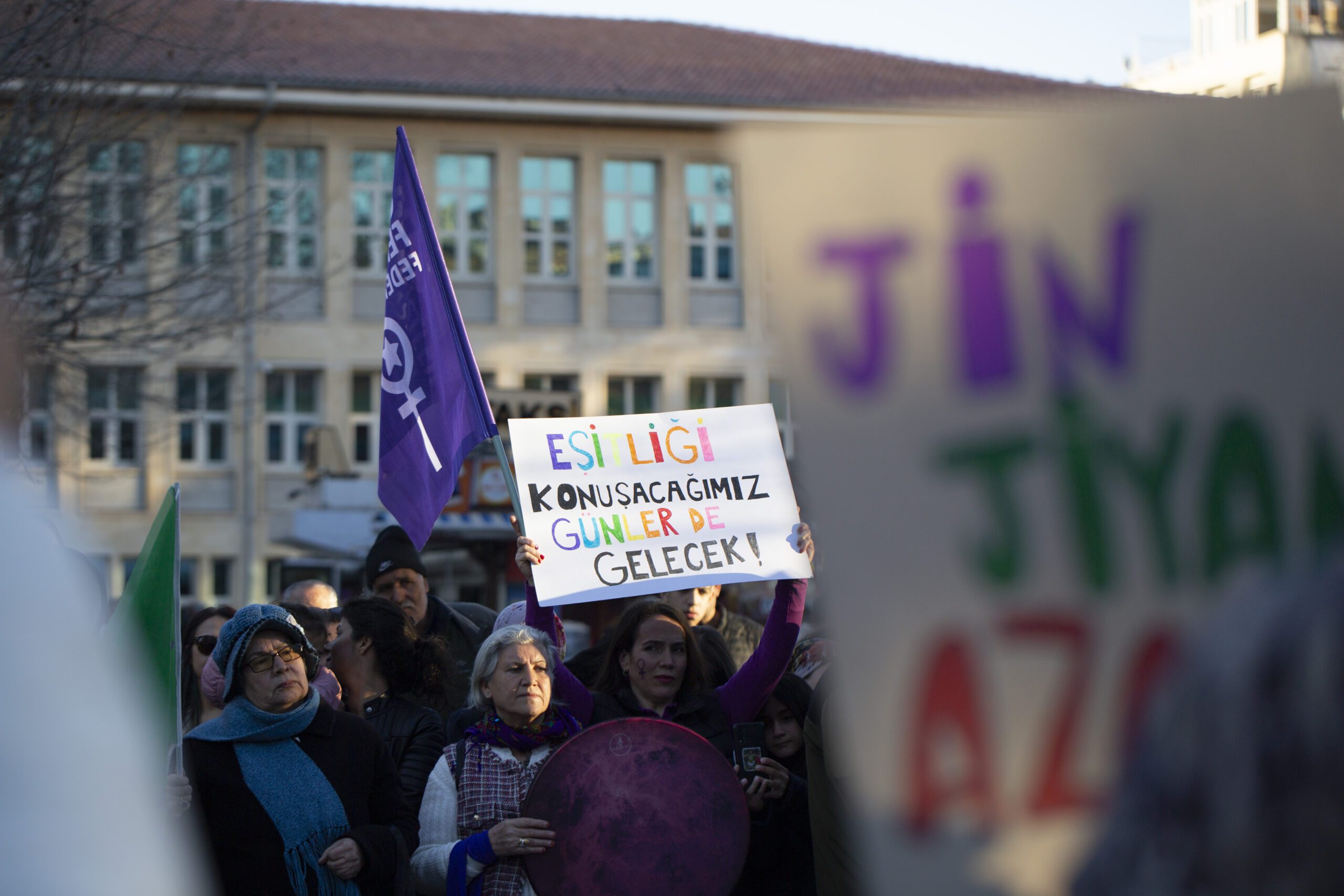 Yürüyüşün ardından gerçekleştirilen basın açıklamasını topluluk adına Eğitim Sen üyesi Gül Fidan Özpolat okudu. Metinde, 2026 yılının ilk iki ayında 45 kadının katledildiği, 33 ölümün ise kayıtlara “şüpheli” olarak geçtiği hatırlatıldı. Cezasızlık politikalarının failleri cesaretlendirdiğini belirten Özpolat, İstanbul Sözleşmesi ve 6284 sayılı Kanun’un etkin uygulanması çağrısında bulundu.