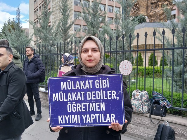 Türkçe öğretmeni Koray Karataş, mülakat sonuçlarına ilişkin, “Bakanın dediği performans ölçen puanlar değil önceden belirlenmiş puanlar. Türkiye’de mülakatlar çok ağır şekilde gerçekleşiyor. Bu süreçlerde intihar eden meslektaşlarımız da oldu. Biz nice emeklerle bu sıralamaları yaptık ve bunun bu kadar hoyratça harcanması çok acı verici. Devletin bakanı devletin kanalında bizi, hakkını arayan öğretmenleri, devlet düşmanı olarak fişledi. Biz böyle bir kötülükle de mücadele ediyoruz.” ifadelerini kullandı.
